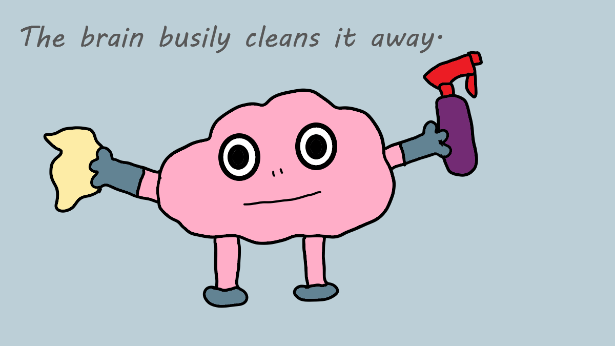 The brain busily cleans it away.