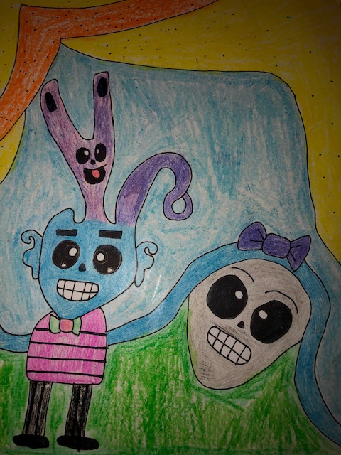 My mind is constantly thinking in which I’m constantly stressing myself out over everything. I’m also a scattered type in which one thought leads to another and I’m all over the place. Which makes it difficult in writing an actual book because I quickly flake off into another character and spin it into another story. In which finishing a book becomes impossible. Which is why I’m often seeking ways to let my mind relax and just sort of take off without worrying about the outcome. That’s why I often turn to drawing. I just take pencil to paper and draw lines and often add eyes to places my mind sees faces. I’ve been experimenting with color in my drawings rather than sticking to black, white, and grays. The drawings below are drawings I’ve made using the whatever happens, happens technique. The technique helps me de-stress and not be so hard on myself. I place a substantial amount of pressure upon my stories which is another reason I always quit several pages in because the idea of failing at writing is horrifying because it’s one of the few things I have a passion for.