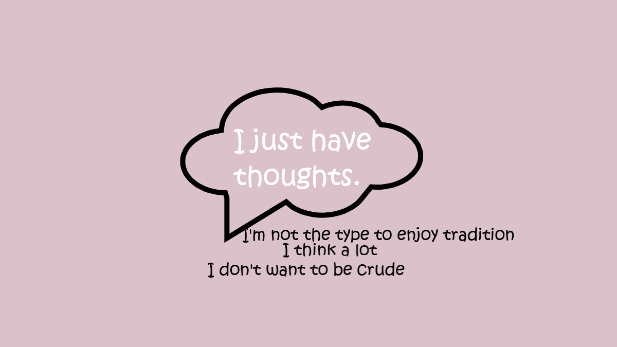 I don’t want to be crude I just have thoughts and I think a lot and I’m not the type to enjoy tradition I just can’t dosimply because people have. I don’t believe in GODand I don’t wan to be blessed during every transaction and I don’t want to smilebecause it makes you feel comfortContinue reading “I just have thoughts.”